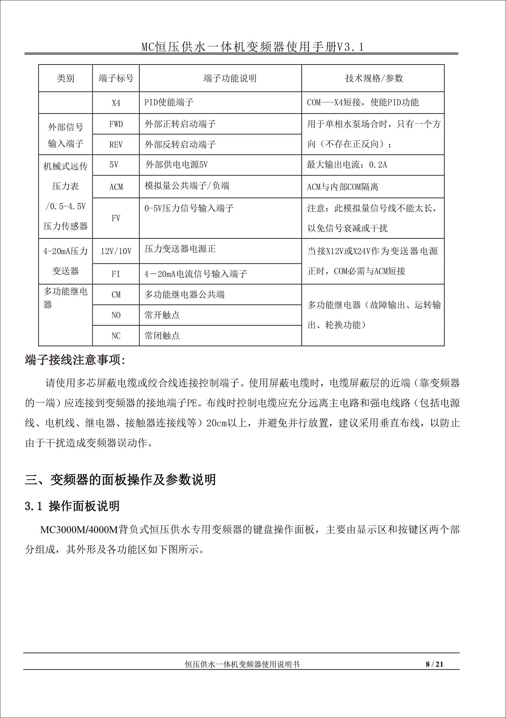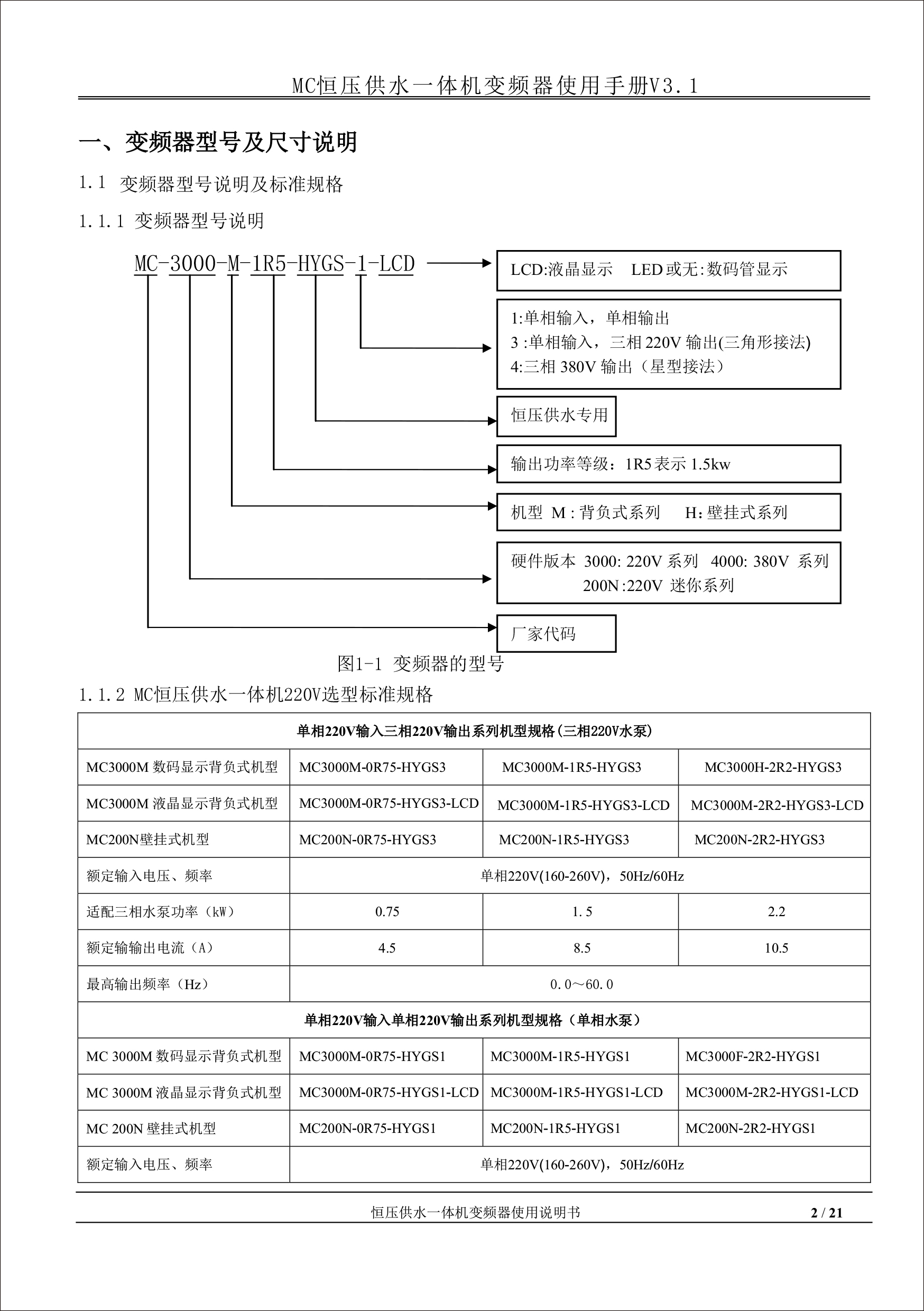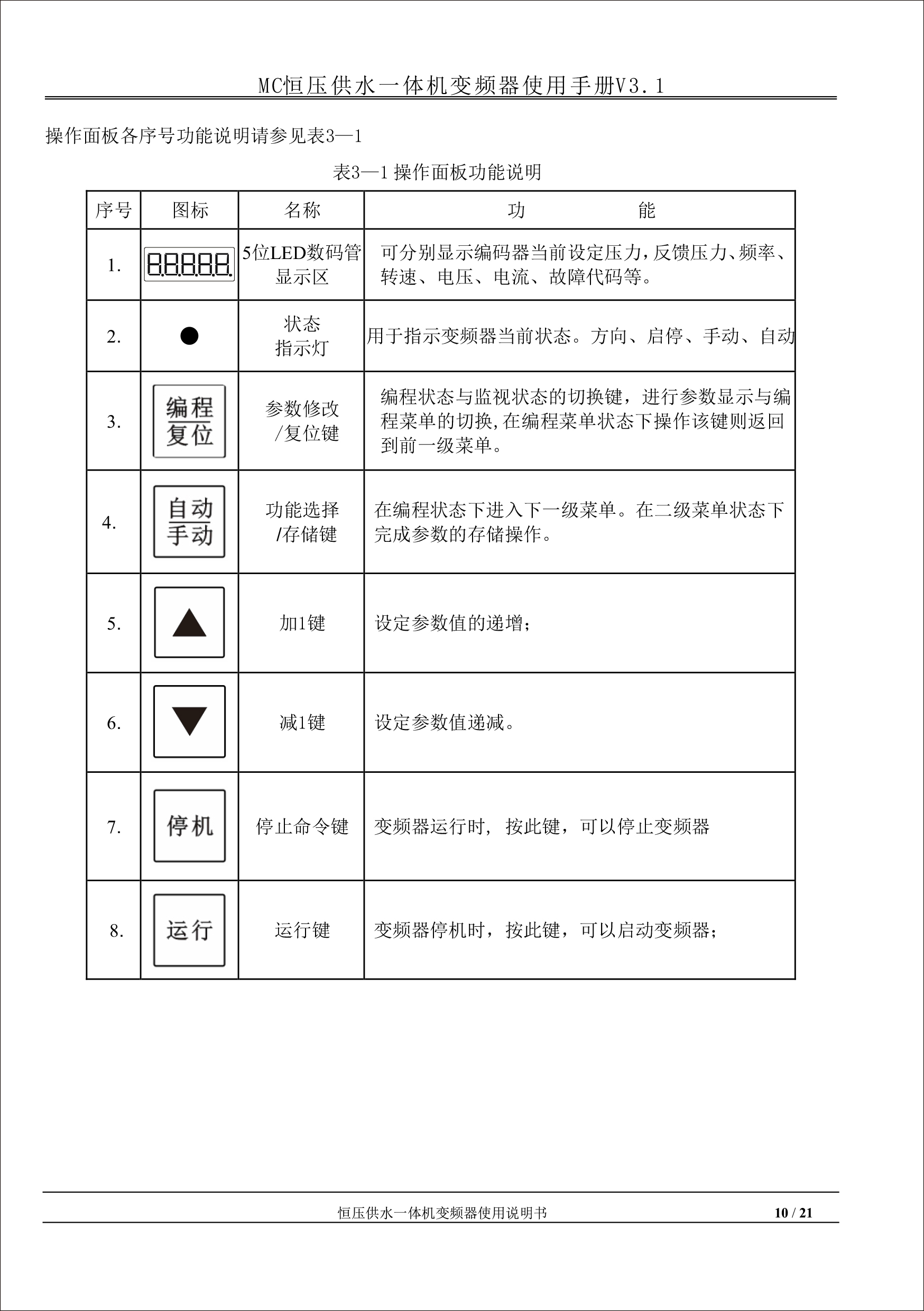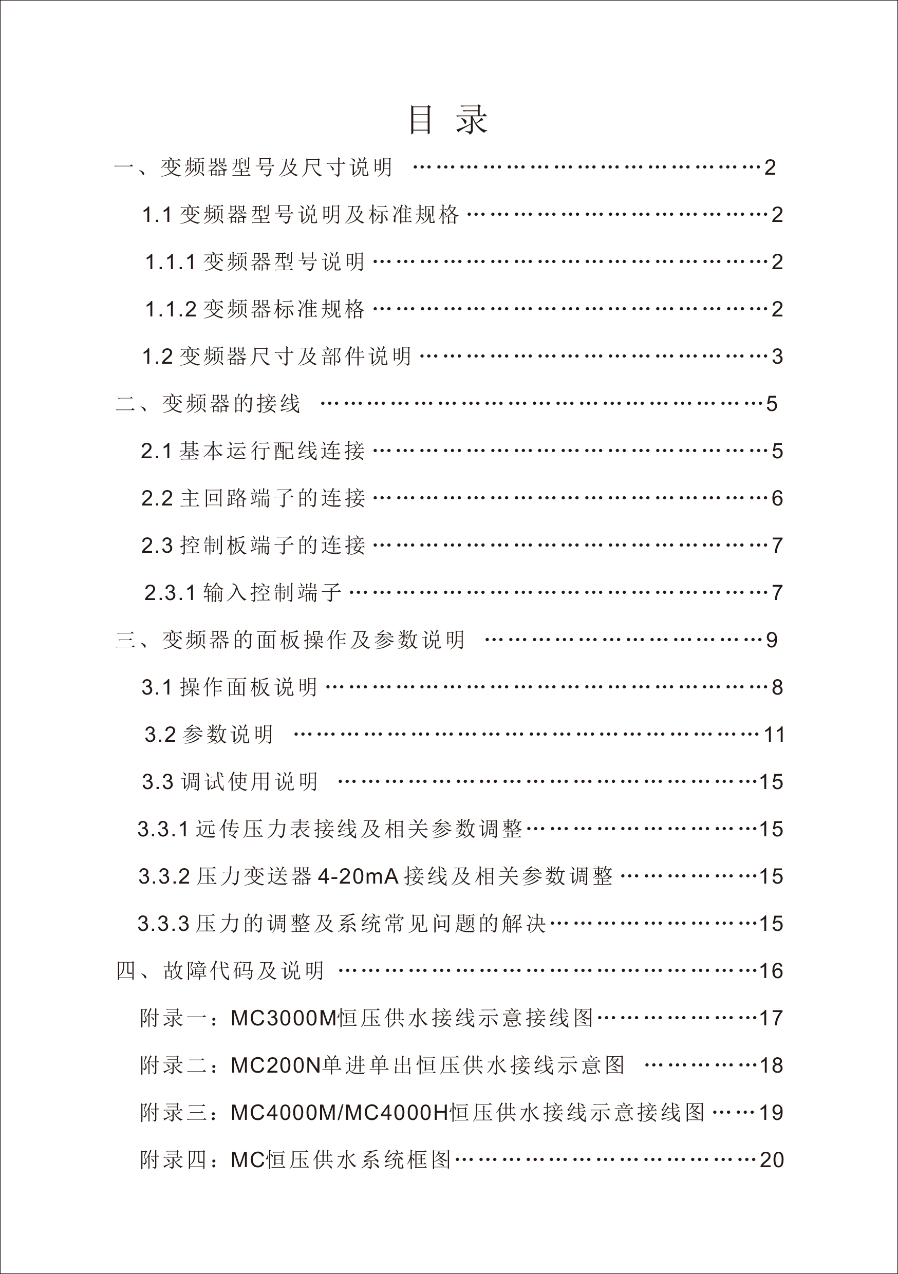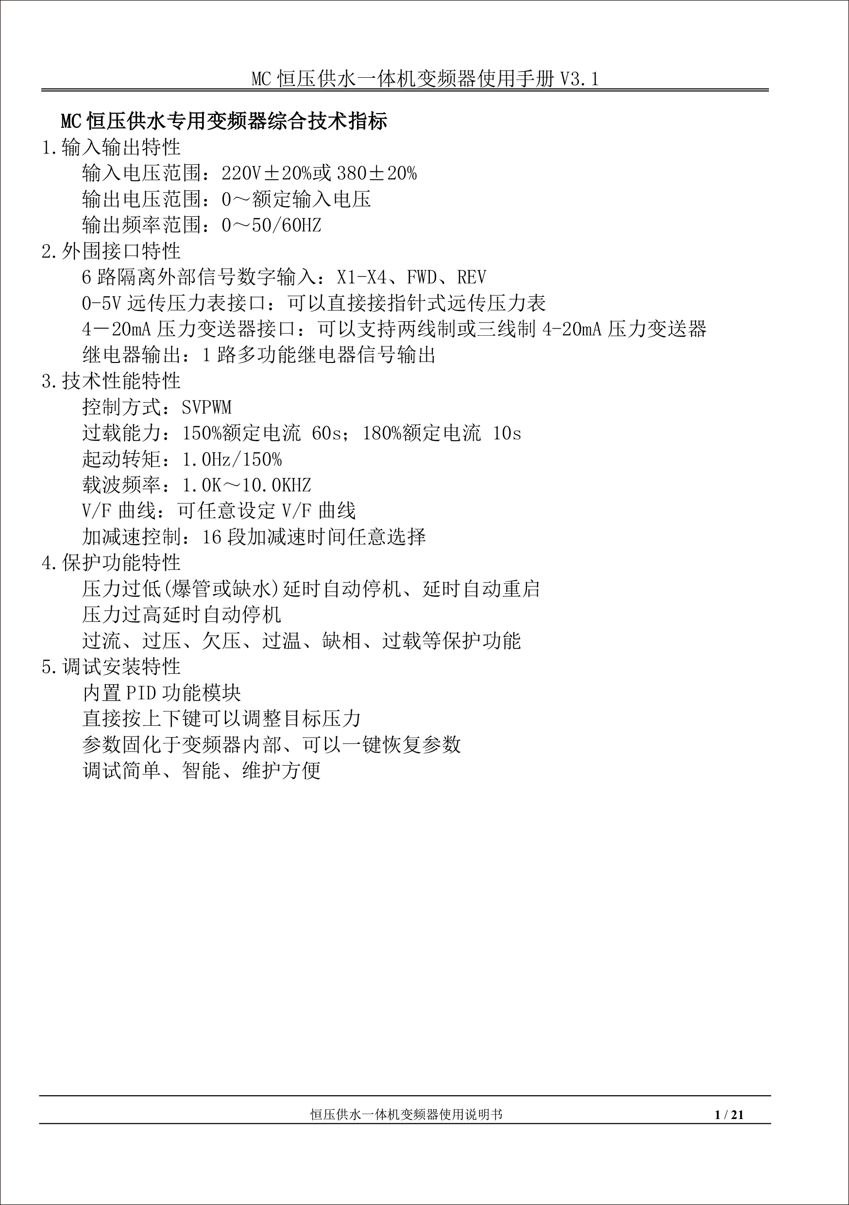 MC恒壓供水一體機(jī)變頻器使用手冊V31-181205