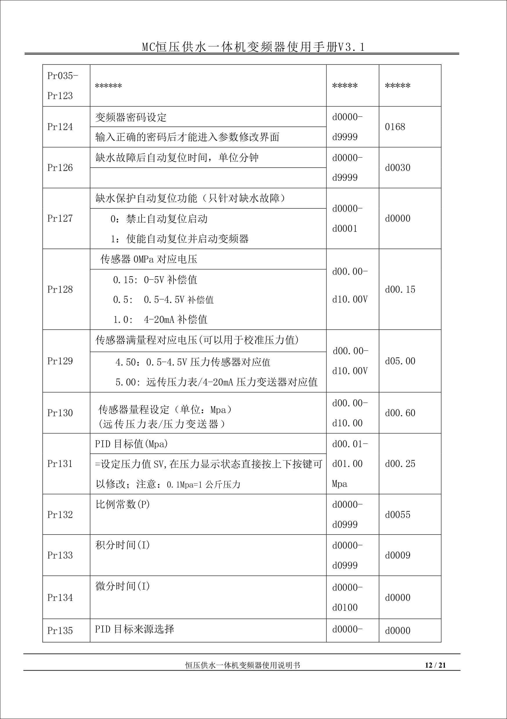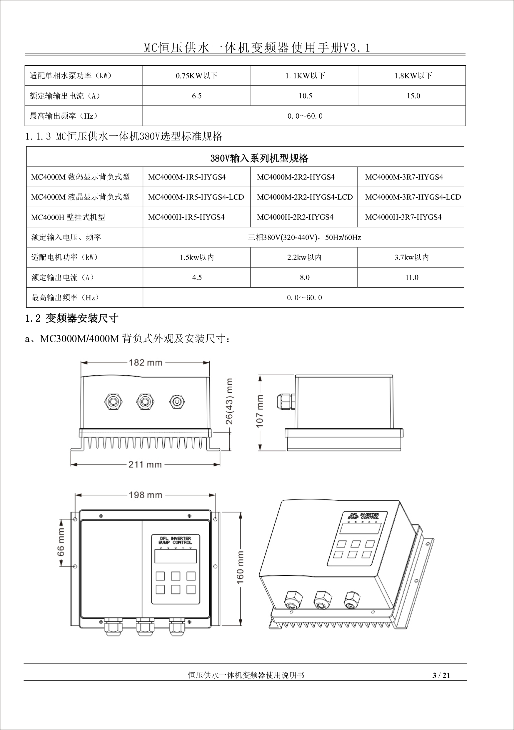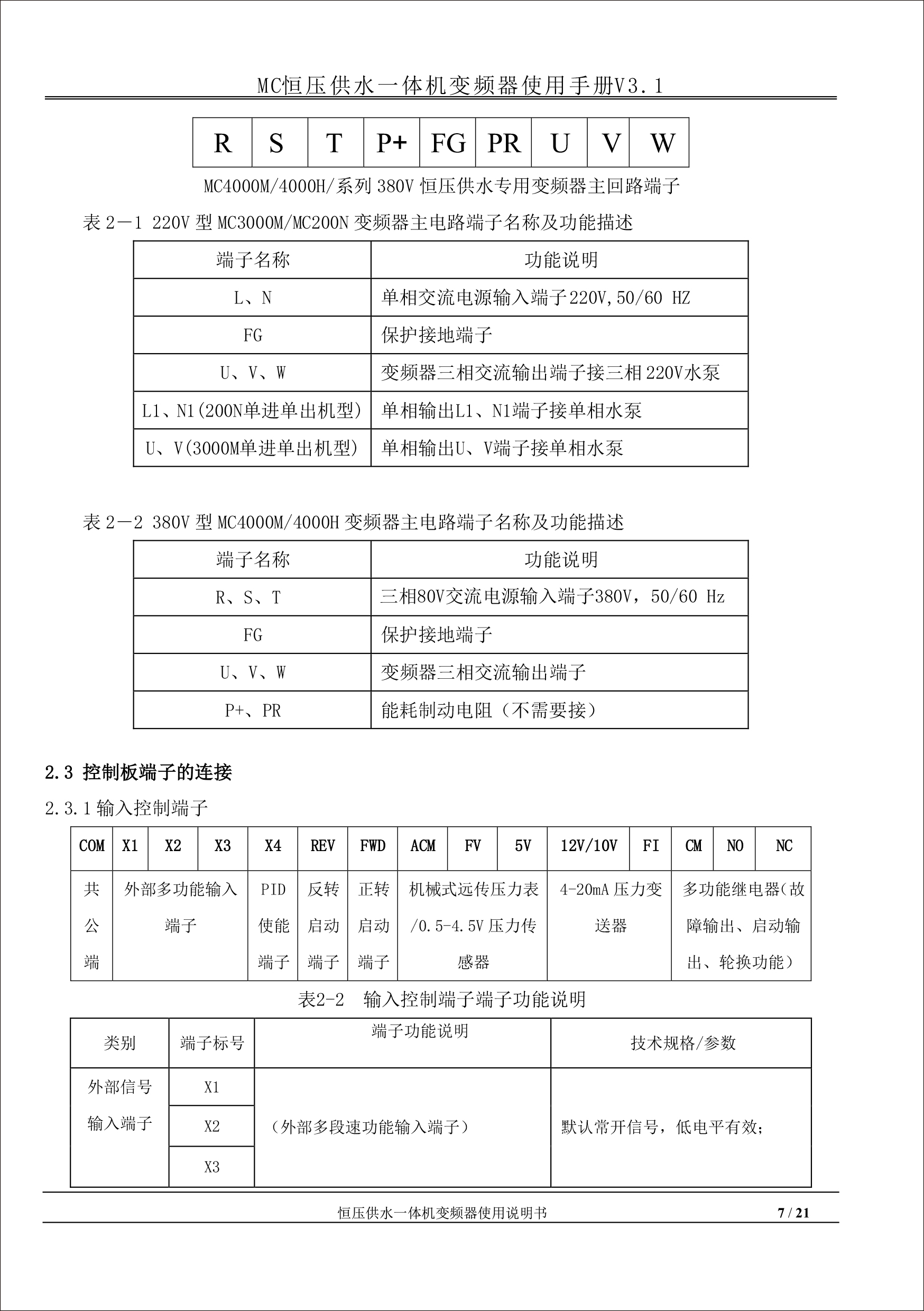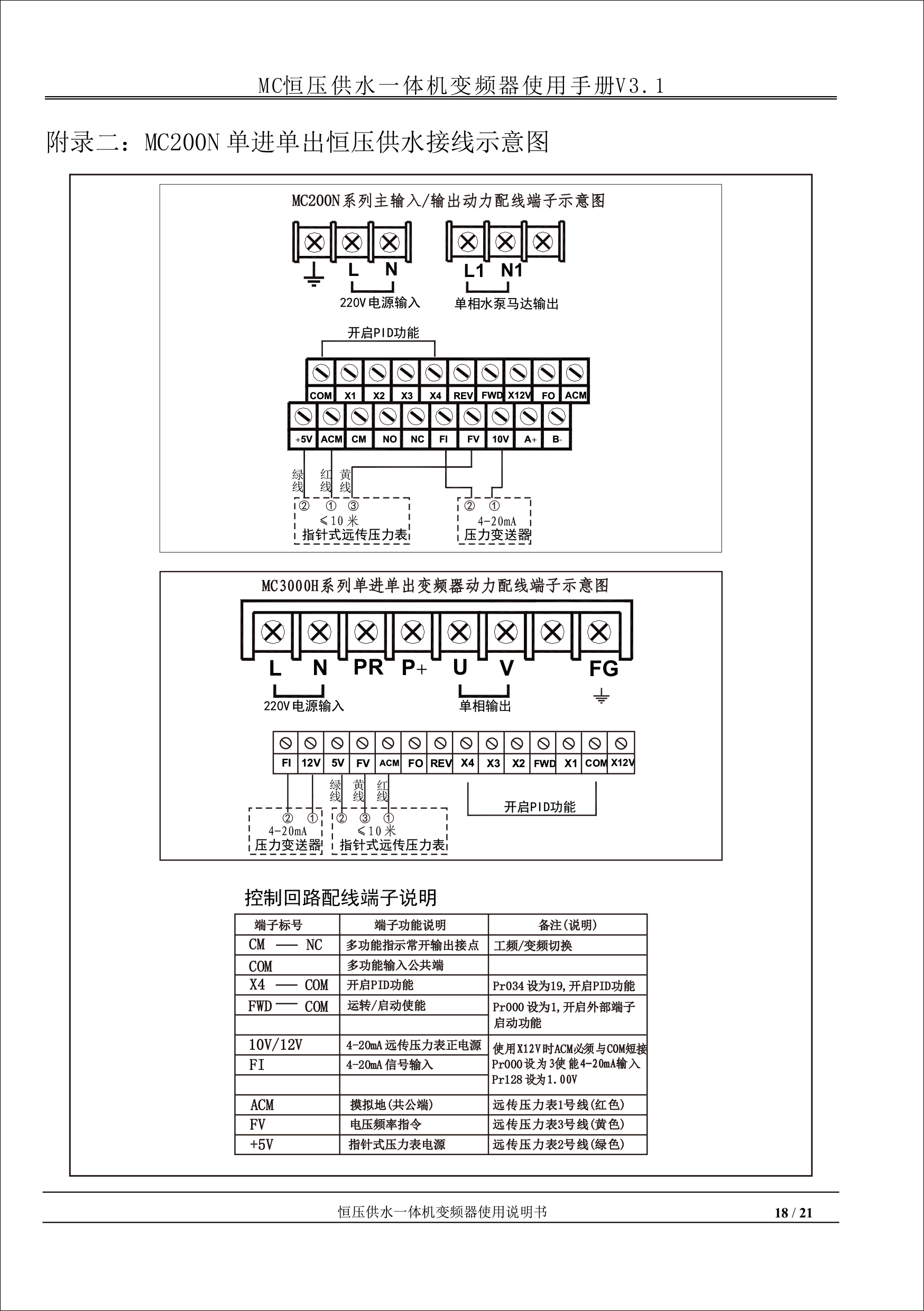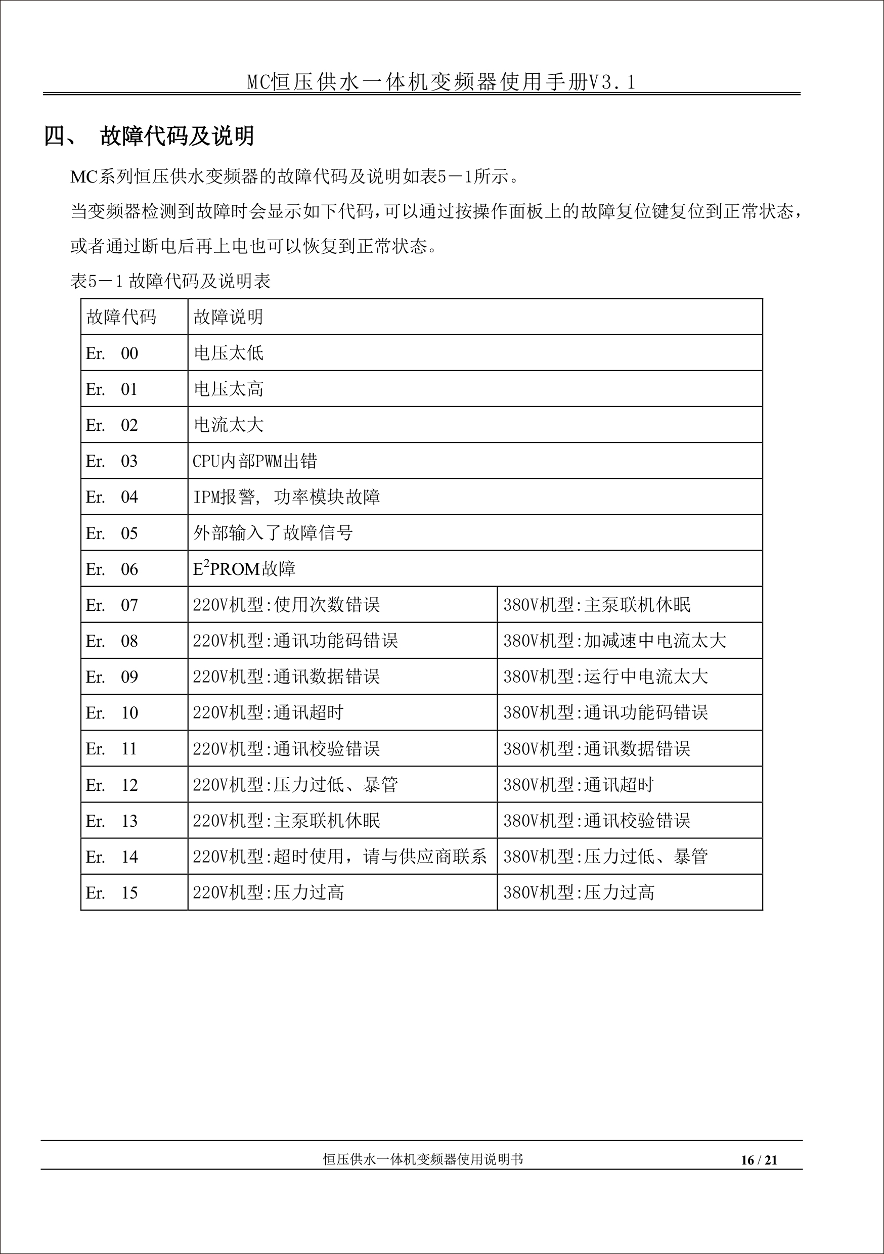 MC恒壓供水一體機(jī)變頻器使用手冊V31-181205